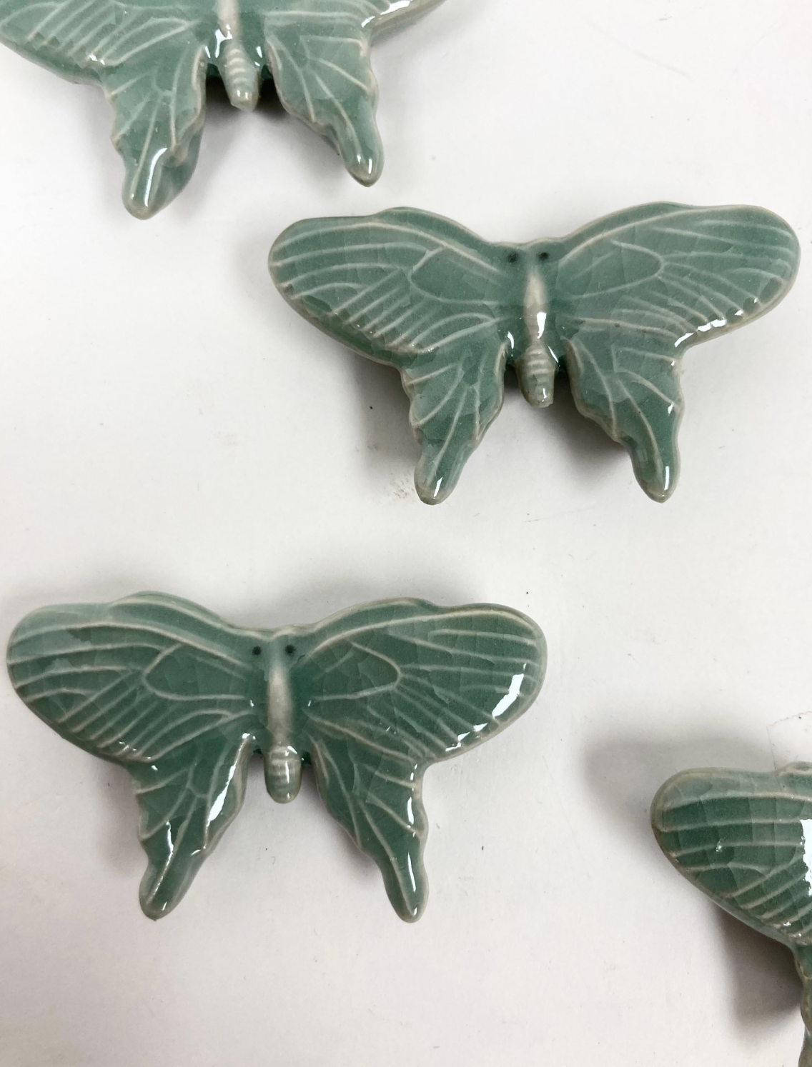 A whimsical companion for your art room, this celadon ceramic butterfly makes the perfect paintbrush rest!